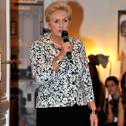 Die Politikerin in einer Kreation von Andrea Baranyai